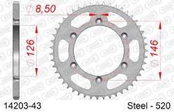 Corona AFAM 14203-43. Las coronas de transmisión para moto AFAM son reconocidas por su diseño innovador y su excelente rendimiento. Fabricadas con un alto nivel de precisión y utilizando materiales de la mejor calidad, estas coronas son elegidas por motociclistas de todo el mundo debido a su durabilidad y resistencia superior.