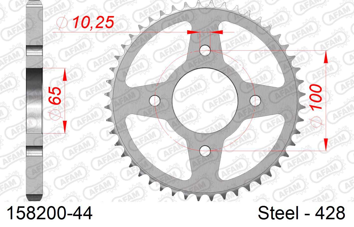 Corona AFAM 158200-44. Las coronas de transmisión para moto AFAM son reconocidas por su diseño innovador y su excelente rendimiento. Fabricadas con un alto nivel de precisión y utilizando materiales de la mejor calidad, estas coronas son elegidas por motociclistas de todo el mundo debido a su durabilidad y resistencia superior.