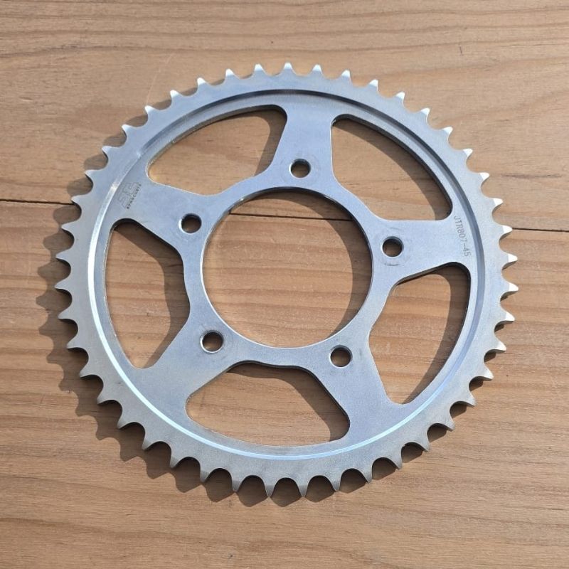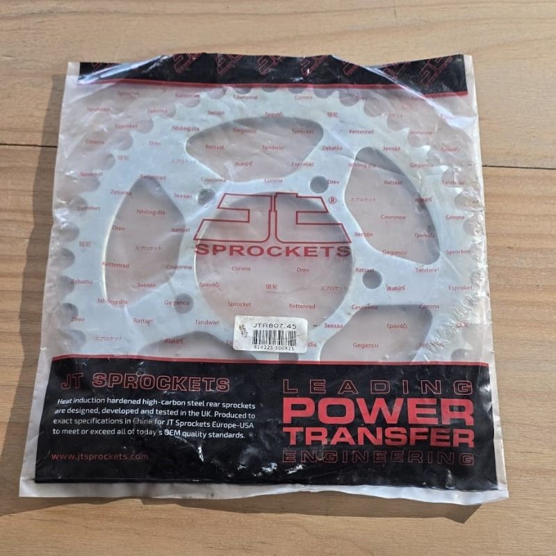 Corona Jt Sprockets JTR807 45. La corona Jt Sprockets Jt Sprockets JTR807 45 posee la mejor calidad y durabilidad con la mejor relación calidad y precio disponible en el mercado. Fabricada en aleación ultra-durable de acero alto de carbono C49, la corona JT Sprockets garantiza un acabado inmejorable. Las coronas y piñones Jt Sprockets para kits de transmisión de moto, son utilizados por fabricantes como Honda, Yamaha, Kawasaki, etc en sus equipaciones de serie.