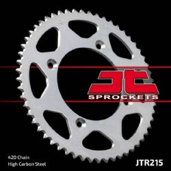 Corona Jt sprockets JTR215 49. La corona Jt Sprockets Jt sprockets JTR215 49 posee la mejor calidad y durabilidad con la mejor relación calidad y precio disponible en el mercado. Fabricada en aleación ultra-durable de acero alto de carbono C49, la corona JT Sprockets garantiza un acabado inmejorable. Las coronas y piñones Jt Sprockets para kits de transmisión de moto, son utilizados por fabricantes como Honda, Yamaha, Kawasaki, etc en sus equipaciones de serie.