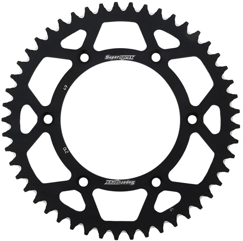 Corona Supersprox RAL210X49BLK. Corona Supersprox RAL486X43BLK dientes con acabados de la mejor calidad y diseñada para ofrecer la mejor durabilidad. Fabricada en aluminio 7075-T6 y mecanizado CNC. Dientes ranurados para evitar la acumulación de suciedad. La imagen mostrada es simplemente orientativa.