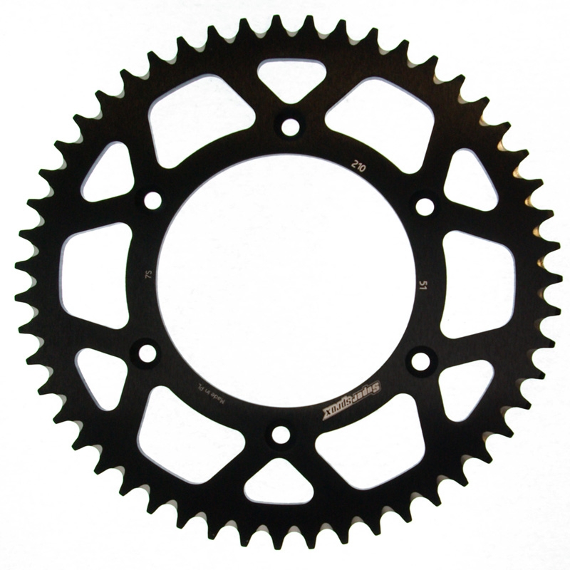 Corona Supersprox RAL210X51BLK. Corona Supersprox RAL486X43BLK dientes con acabados de la mejor calidad y diseñada para ofrecer la mejor durabilidad. Fabricada en aluminio 7075-T6 y mecanizado CNC. Dientes ranurados para evitar la acumulación de suciedad. La imagen mostrada es simplemente orientativa.