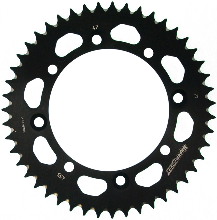 Corona Supersprox RAL455X47BLK. Corona Supersprox RAL486X43BLK dientes con acabados de la mejor calidad y diseñada para ofrecer la mejor durabilidad. Fabricada en aluminio 7075-T6 y mecanizado CNC. Dientes ranurados para evitar la acumulación de suciedad. La imagen mostrada es simplemente orientativa.