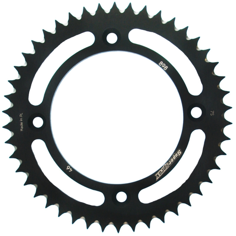 Corona Supersprox RAL898X46BLK. Corona Supersprox RAL486X43BLK dientes con acabados de la mejor calidad y diseñada para ofrecer la mejor durabilidad. Fabricada en aluminio 7075-T6 y mecanizado CNC. Dientes ranurados para evitar la acumulación de suciedad. La imagen mostrada es simplemente orientativa.