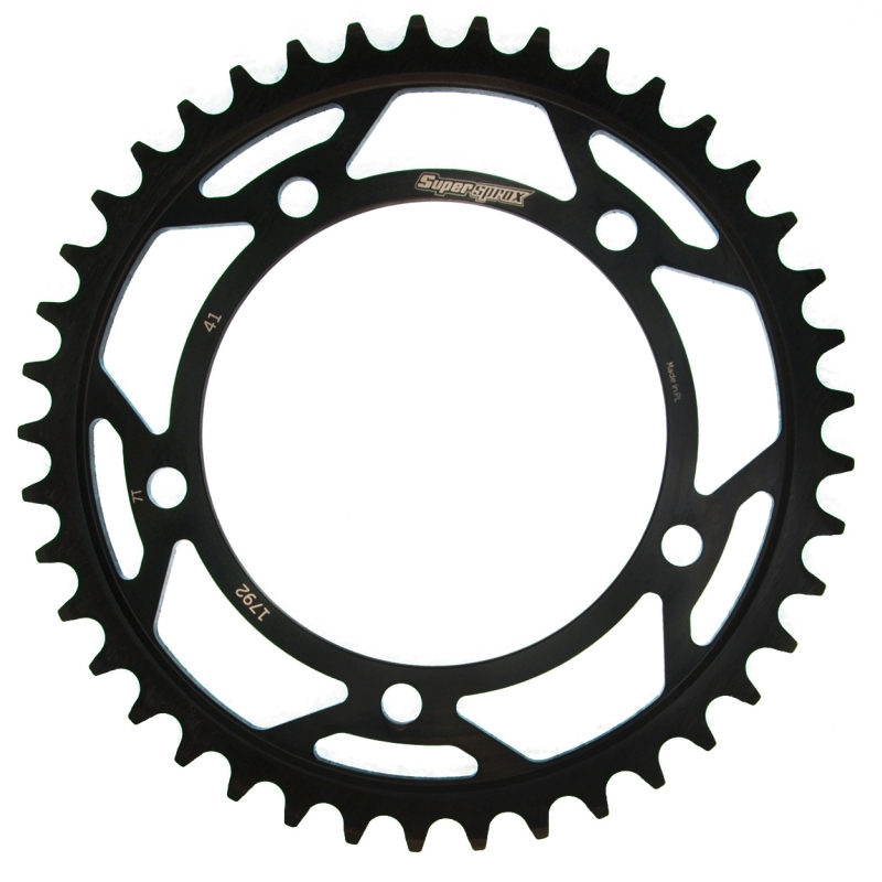 Corona Supersprox RFE1792X41BLK. Corona Supersprox RFE1792X41BLK con acabados de la mejor calidad y diseñada para ofrecer la mejor durabilidad. Fabricada en acero con tratamiento anticorrosión tres veces más duradera y resistente que una corona de aluminio. Dientes ranurados para evitar la acumulación de suciedad.