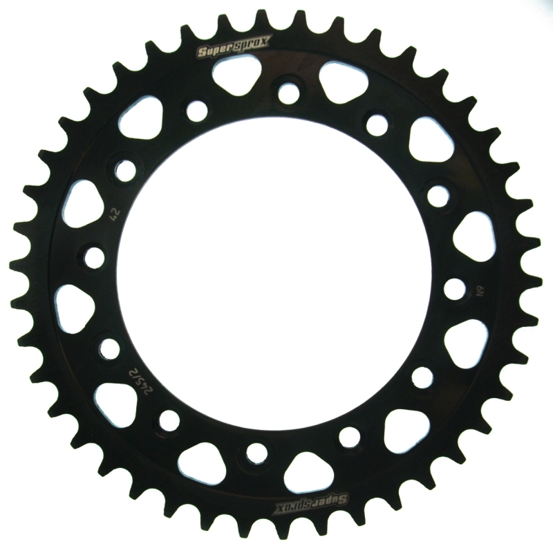 Corona Supersprox RFE2452X42BLK. Corona Supersprox RFE2452X42BLK con acabados de la mejor calidad y diseñada para ofrecer la mejor durabilidad. Fabricada en acero con tratamiento anticorrosión tres veces más duradera y resistente que una corona de aluminio. Dientes ranurados para evitar la acumulación de suciedad.