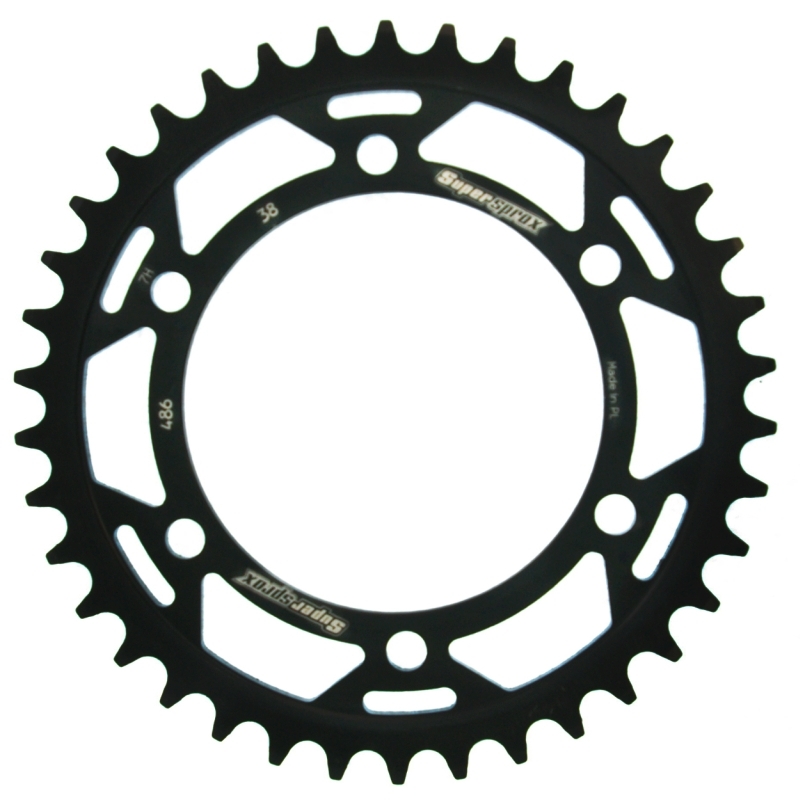 Corona Supersprox RFE486X38BLK. Corona Supersprox RFE486X38BLK con acabados de la mejor calidad y diseñada para ofrecer la mejor durabilidad. Fabricada en acero con tratamiento anticorrosión tres veces más duradera y resistente que una corona de aluminio. Dientes ranurados para evitar la acumulación de suciedad.