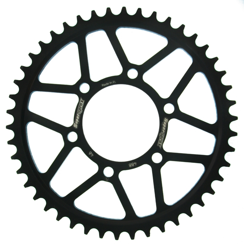 Corona Supersprox RFE488X46BLK. Corona Supersprox RFE488X46BLK con acabados de la mejor calidad y diseñada para ofrecer la mejor durabilidad. Fabricada en acero con tratamiento anticorrosión tres veces más duradera y resistente que una corona de aluminio. Dientes ranurados para evitar la acumulación de suciedad.