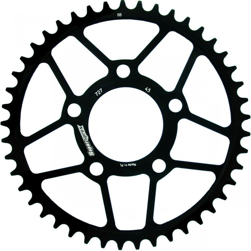 Corona Supersprox RFE727X45BLK Bmw HP4 1000 2012/2015. Corona Supersprox RFE727X45BLK con acabados de la mejor calidad y diseñada para ofrecer la mejor durabilidad. Fabricada en acero con tratamiento anticorrosión tres veces más duradera y resistente que una corona de aluminio. Dientes ranurados para evitar la acumulación de suciedad.