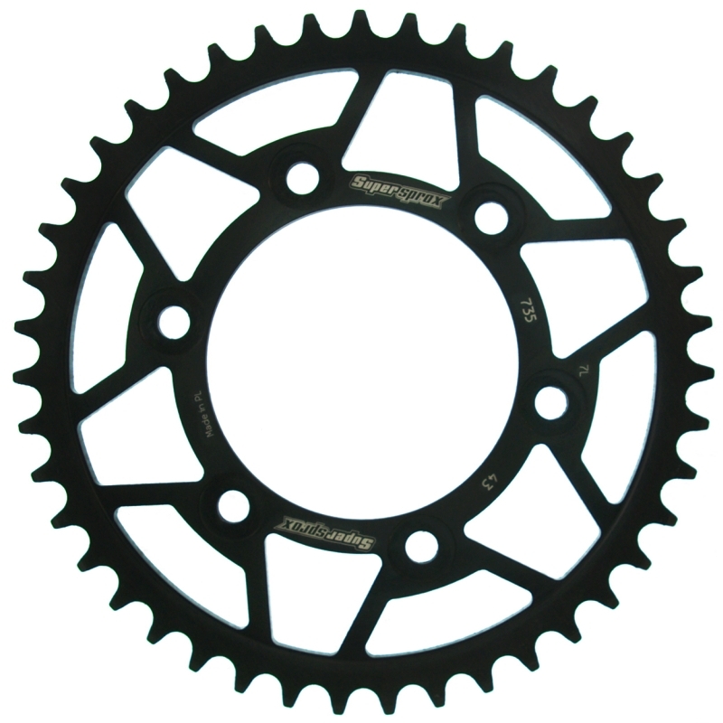 Corona Supersprox RFE735X43BLK. Corona Supersprox RFE735X43BLK con acabados de la mejor calidad y diseñada para ofrecer la mejor durabilidad. Fabricada en acero con tratamiento anticorrosión tres veces más duradera y resistente que una corona de aluminio. Dientes ranurados para evitar la acumulación de suciedad.