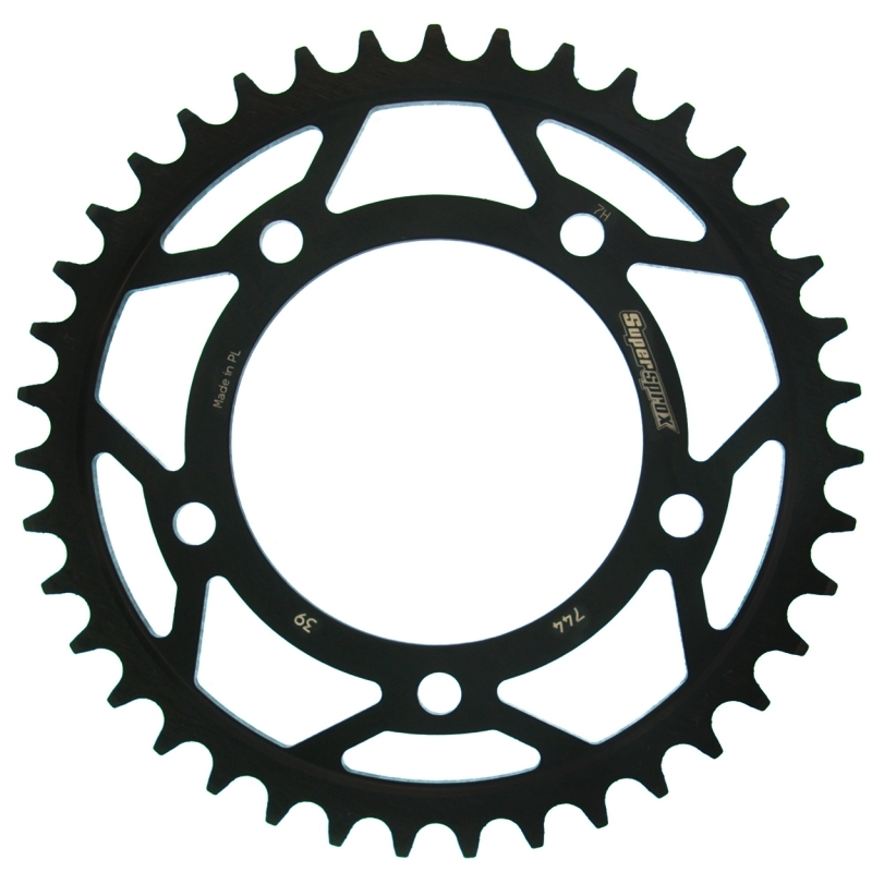 Corona Supersprox RFE744X39BLK. Corona Supersprox RFE744X39BLK con acabados de la mejor calidad y diseñada para ofrecer la mejor durabilidad. Fabricada en acero con tratamiento anticorrosión tres veces más duradera y resistente que una corona de aluminio. Dientes ranurados para evitar la acumulación de suciedad.