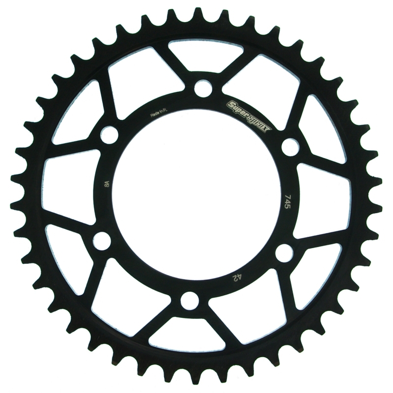 Corona Supersprox RFE745X42BLK. Corona Supersprox RFE745X42BLK con acabados de la mejor calidad y diseñada para ofrecer la mejor durabilidad. Fabricada en acero con tratamiento anticorrosión tres veces más duradera y resistente que una corona de aluminio. Dientes ranurados para evitar la acumulación de suciedad.