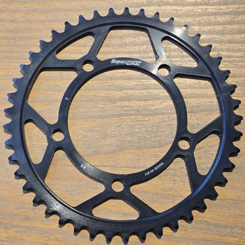 Corona Supersprox RFE7X45BLK. Corona Supersprox RFE7X45BLK con acabados de la mejor calidad y diseñada para ofrecer la mejor durabilidad. Fabricada en acero con tratamiento anticorrosión tres veces más duradera y resistente que una corona de aluminio. Dientes ranurados para evitar la acumulación de suciedad.