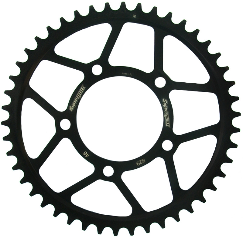 Corona Supersprox RFE829X46BLK. Corona Supersprox RFE829X46BLK con acabados de la mejor calidad y diseñada para ofrecer la mejor durabilidad. Fabricada en acero con tratamiento anticorrosión tres veces más duradera y resistente que una corona de aluminio. Dientes ranurados para evitar la acumulación de suciedad.