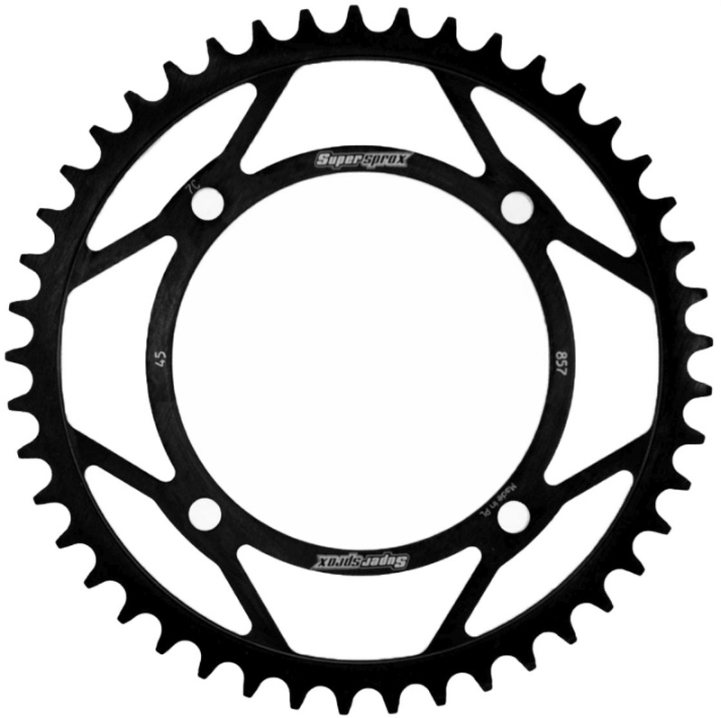 Corona Supersprox RFE857X45BLK. Corona Supersprox RFE857X45BLK con acabados de la mejor calidad y diseñada para ofrecer la mejor durabilidad. Fabricada en acero con tratamiento anticorrosión tres veces más duradera y resistente que una corona de aluminio. Dientes ranurados para evitar la acumulación de suciedad.