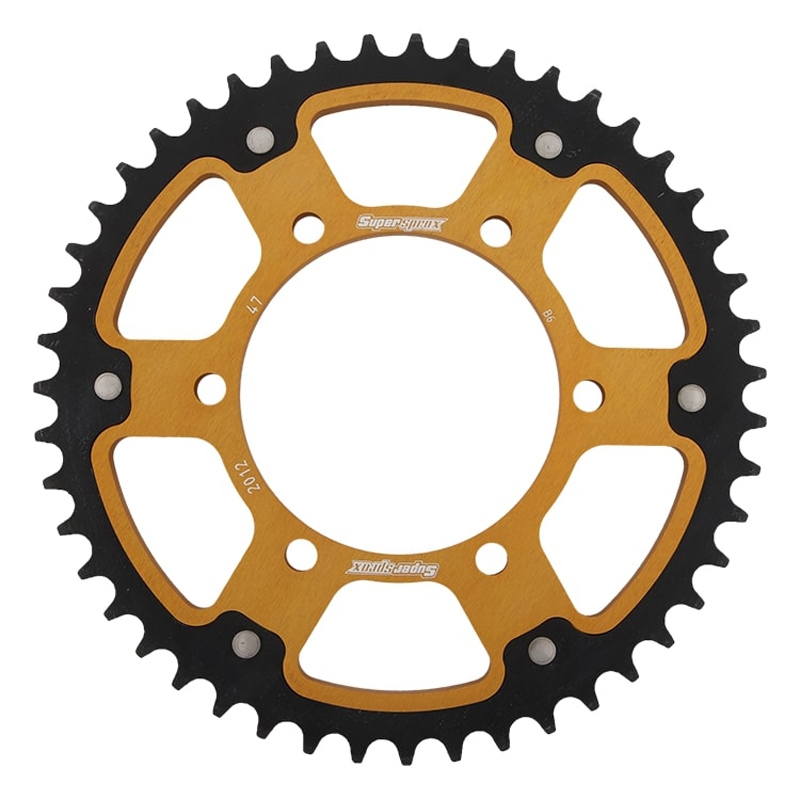 Corona Supersprox RST2012X47GLD. Corona Supersprox RST2012X47GLD con acabados de la mejor calidad y diseñada para ofrecer la mejor durabilidad. La corona Supersprox Stealth posee el cuerpo interior de aluminio y la corona exterior en acero con tratamiento anticorrosión tres veces más duradera y resistente que una corona de aluminio. Dientes ranurados para evitar la acumulación de suciedad. La imagen mostrada es simplemente orientativa.