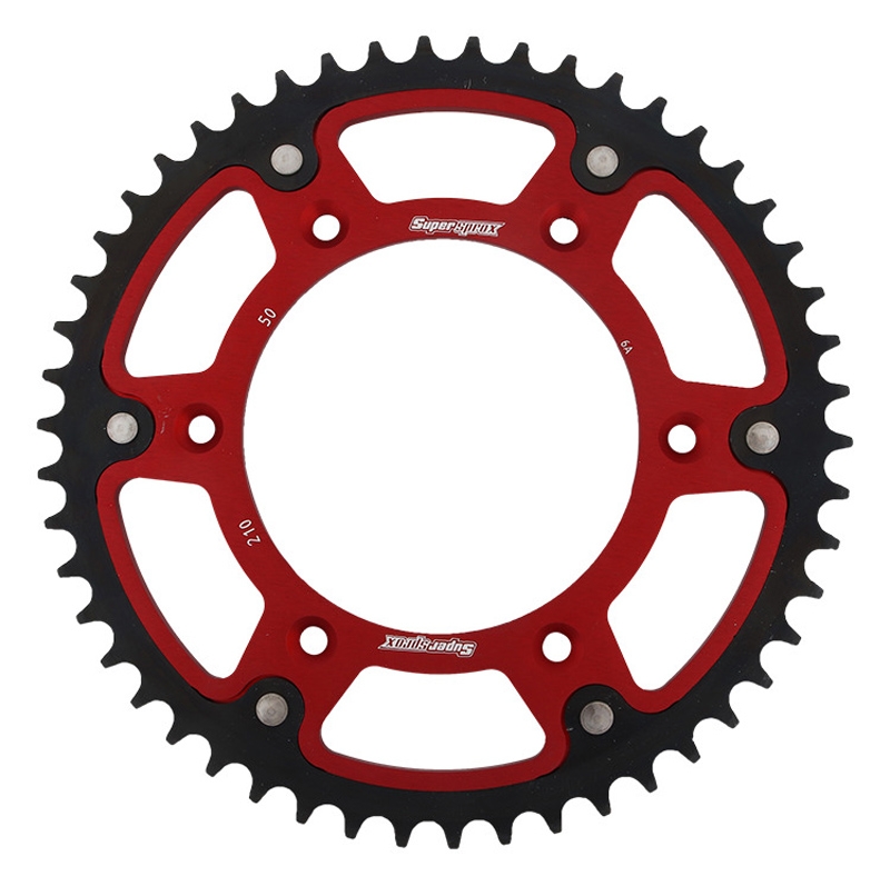 Corona Supersprox RST210X50RED. Corona Supersprox RST210X50RED con acabados de la mejor calidad y diseñada para ofrecer la mejor durabilidad. La corona Supersprox Stealth posee el cuerpo interior de aluminio y la corona exterior en acero con tratamiento anticorrosión tres veces más duradera y resistente que una corona de aluminio. Dientes ranurados para evitar la acumulación de suciedad. La imagen mostrada es simplemente orientativa.