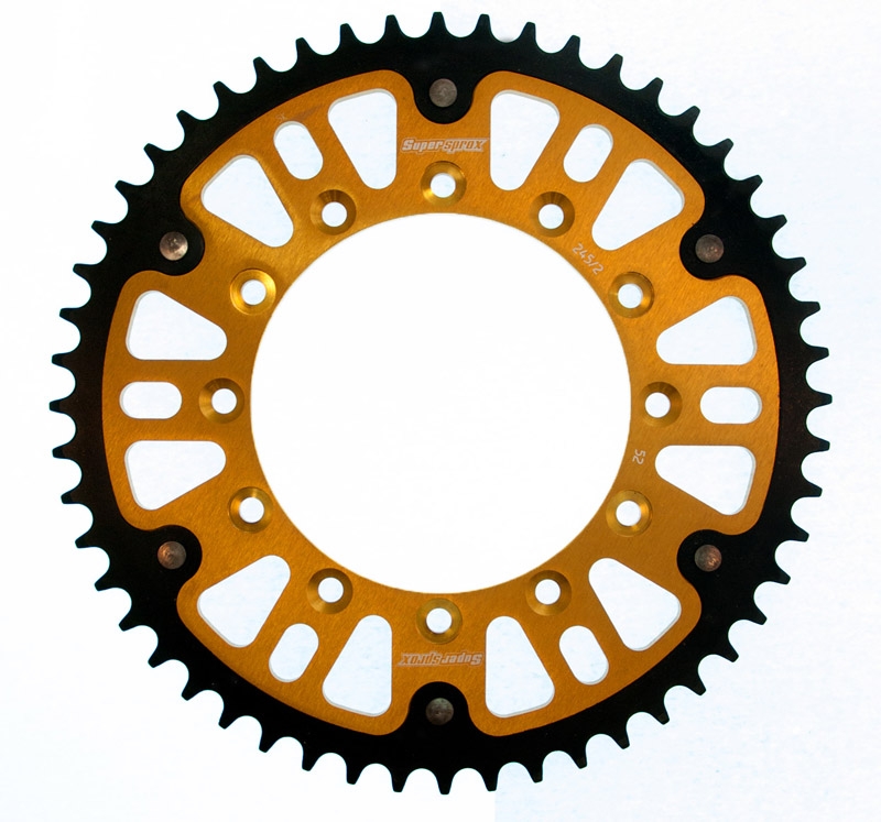 Corona Supersprox RST2452X52GLD. Corona Supersprox RST2452X52GLD con acabados de la mejor calidad y diseñada para ofrecer la mejor durabilidad. La corona Supersprox Stealth posee el cuerpo interior de aluminio y la corona exterior en acero con tratamiento anticorrosión tres veces más duradera y resistente que una corona de aluminio. Dientes ranurados para evitar la acumulación de suciedad. La imagen mostrada es simplemente orientativa.