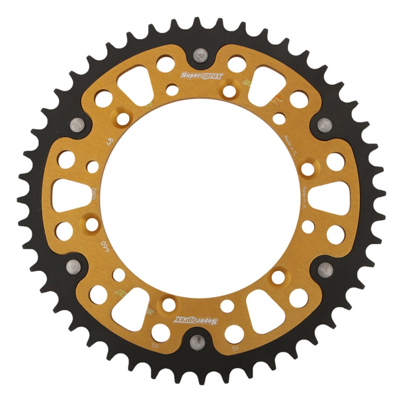 Corona Supersprox RST460X48GLD. Corona Supersprox RST460X48GLD con acabados de la mejor calidad y diseñada para ofrecer la mejor durabilidad. La corona Supersprox Stealth posee el cuerpo interior de aluminio y la corona exterior en acero con tratamiento anticorrosión tres veces más duradera y resistente que una corona de aluminio. Dientes ranurados para evitar la acumulación de suciedad. La imagen mostrada es simplemente orientativa.