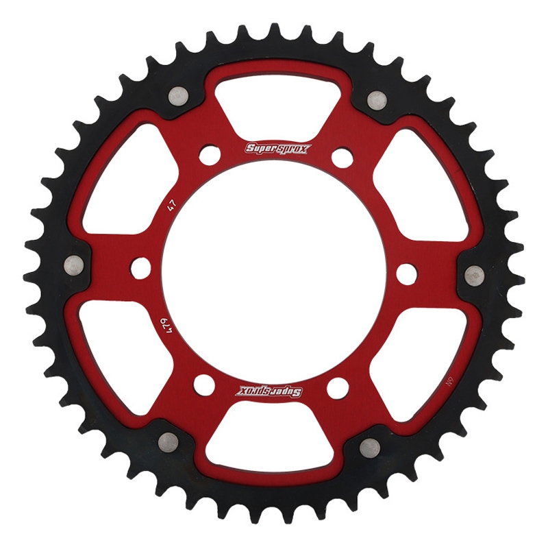 Corona Supersprox RST479X47RED. Corona Supersprox RST479X47RED con acabados de la mejor calidad y diseñada para ofrecer la mejor durabilidad. La corona Supersprox Stealth posee el cuerpo interior de aluminio y la corona exterior en acero con tratamiento anticorrosión tres veces más duradera y resistente que una corona de aluminio. Dientes ranurados para evitar la acumulación de suciedad. La imagen mostrada es simplemente orientativa.