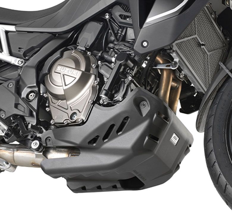 Este cubrecárter ha sido desarrollado por Givi para adaptarse de forma precisa al chasis de la V-Strom 800SE, respetando su diseño y sin interferir con otros componentes de la moto.