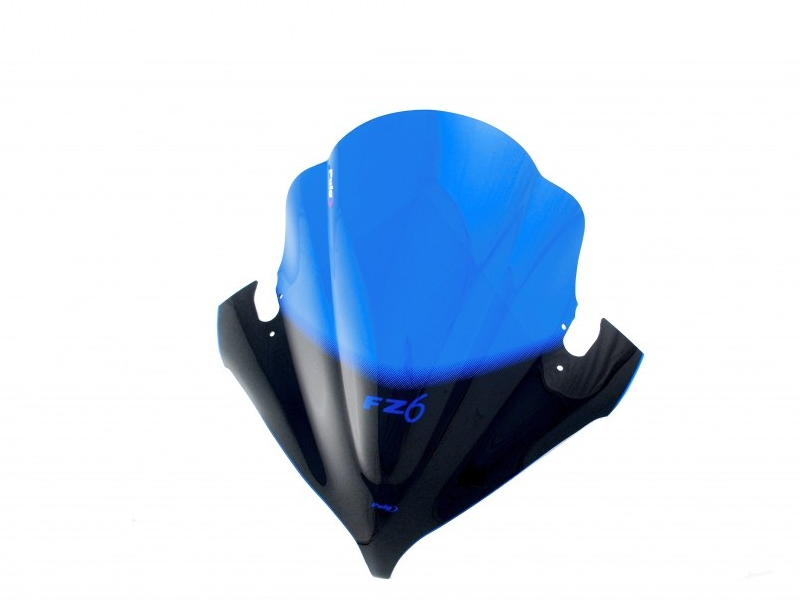 Carenabris Puig Racing 1646A Azul. Cúpula derivada de la competición y específica para Yamaha Fz6 Fazer 2004/ 2008. Las cúpulas Puig Z-Racing estudiadas en el túnel del viento, mejoran el coeficiente aerodinámico y la protección contra el viento en un 12,7% de media. Su doble altura disminuye el efecto del aire sobre el casco. Realizada en acrílico de alto impacto de 3 mm, resistente y duradero. Perfil redondeado a 3 mm en los modelos desde el 2004, cumpliendo con la normativa del TÜV alemán. No se requiere ribete.
