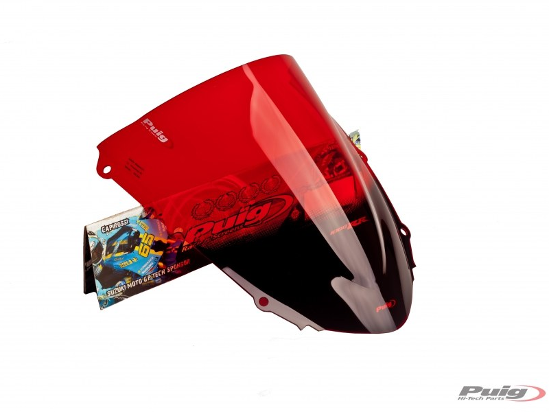 Carenabris Puig Racing 1665R Rojo. Cúpula derivada de la competición y específica para Honda Cbr 1000 rr 2004/ 2007. Las cúpulas Puig Z-Racing estudiadas en el túnel del viento, mejoran el coeficiente aerodinámico y la protección contra el viento en un 12,7% de media. Su doble altura disminuye el efecto del aire sobre el casco. Realizada en acrílico de alto impacto de 3 mm, resistente y duradero. Perfil redondeado a 3 mm en los modelos desde el 2004, cumpliendo con la normativa del TÜV alemán. No se requiere ribete. Medidas: 370 x 330 mm.