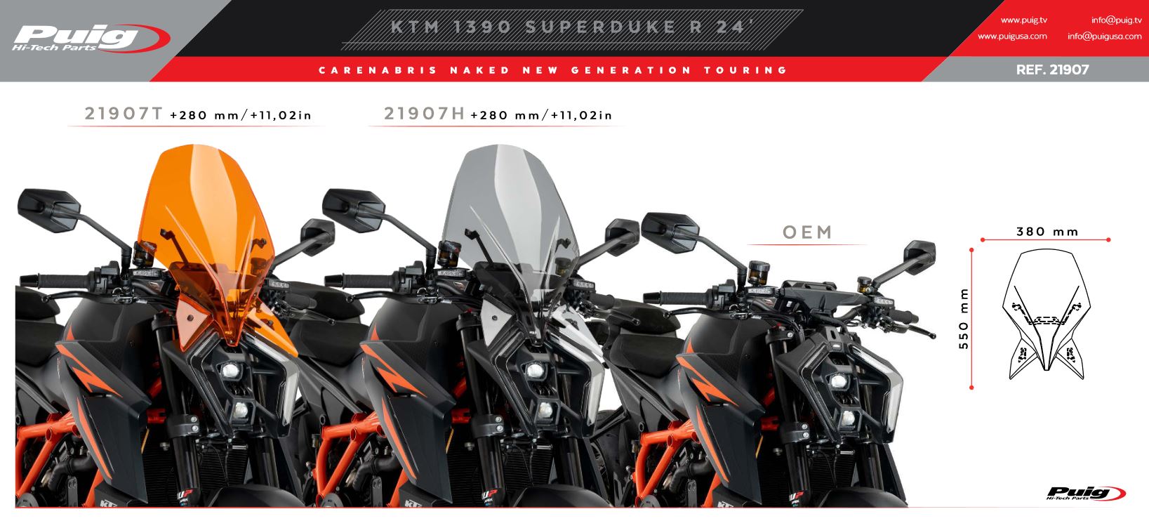 MEDIDAS CÚPULA PUIG 21907 Naked New Generation Touring KTM 1390 Super Duke 2024: