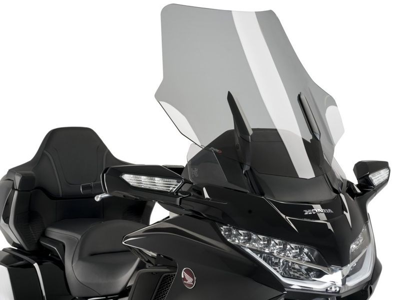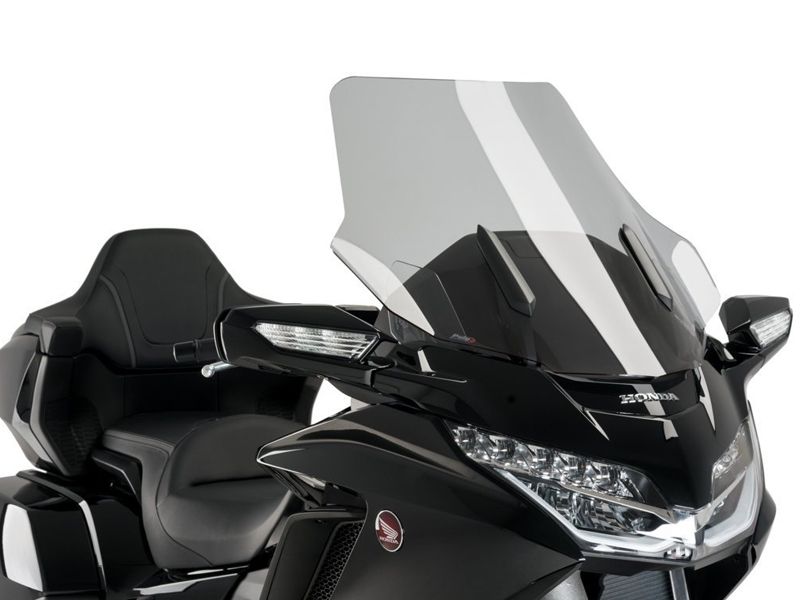 Cúpula Puig 3160H Honda GL1800 Gold Wing 2019 Touring ahumada clara. La cúpula Puig 3160H Touring está indicada para conducciones de larga distancia. Su diseño es específico para la nueva Honda GL1800 Gold Wing 2019 y gracias a su doble altura, mejora notablemente la aerodinámica y la disminución del efecto del viento sobre el casco de motorista. De la resistencia se encarga un acrílico de alto impacto con 3 mm de grosor que garantiza la máxima durabilidad y acabados impecables.