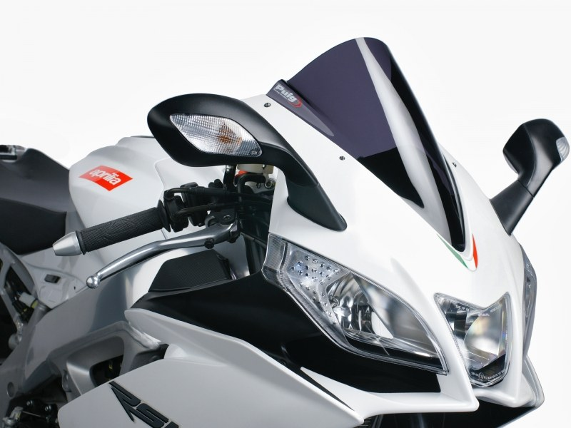 Cúpula Puig Racing 4945F Ahumada Oscura. Cúpula derivada de la competición y específica para Aprilia RS4 50, RS4 125 y RSV4. Las cúpulas Puig Z-Racing estudiadas en el túnel del viento, mejoran el coeficiente aerodinámico y la protección contra el viento en un 12,7% de media. Su doble altura disminuye el efecto del aire sobre el casco. Realizada en acrílico de alto impacto de 3 mm, resistente y duradero. Perfil redondeado a 3 mm en los modelos desde el 2004, cumpliendo con la normativa del TÜV alemán. No se requiere ribete.