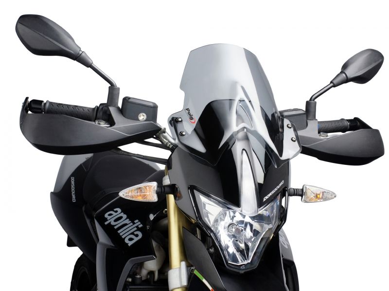 Carenabris Puig 4947H Ahumado. Cúpula Puig Naked New Generation específica para la Aprilia Dorsoduro 750 / 1200. Fabricada con metracrilato de alto Impacto (3 mm) que ayuda a la aerodinámica y ofrece una mayor protección del piloto contra el viento. Con un diseño específico para cada moto, los carenabrises Naked New Generation se adaptan perfectamente a la motocicleta, consiguiendo un ajuste perfecto tanto en montaje como en acabados. Medidas (Altura x Anchura): 330 x 395 mm.