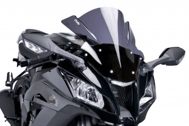 Carenabris Puig Racing 5603F Ahumado Oscuro. Cúpula derivada de la competición y específica para Kawasaki Zx-10 R 2011/ 2015. Las cúpulas Puig Z-Racing estudiadas en el túnel del viento, mejoran el coeficiente aerodinámico y la protección contra el viento en un 12,7% de media. Su doble altura disminuye el efecto del aire sobre el casco. Realizada en acrílico de alto impacto de 3 mm, resistente y duradero. Perfil redondeado a 3 mm en los modelos desde el 2004, cumpliendo con la normativa del TÜV alemán. No se requiere ribete. Medidas (Altura x Anchura): 450 x 350 mm.