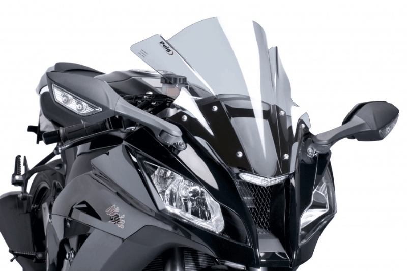 Carenabris Puig Racing 5603W Transparente. Cúpula derivada de la competición y específica para Kawasaki Zx-10 R 2011/ 2015. Las cúpulas Puig Z-Racing estudiadas en el túnel del viento, mejoran el coeficiente aerodinámico y la protección contra el viento en un 12,7% de media. Su doble altura disminuye el efecto del aire sobre el casco. Realizada en acrílico de alto impacto de 3 mm, resistente y duradero. Perfil redondeado a 3 mm en los modelos desde el 2004, cumpliendo con la normativa del TÜV alemán. No se requiere ribete. Medidas (Altura x Anchura): 450 x 350 mm.