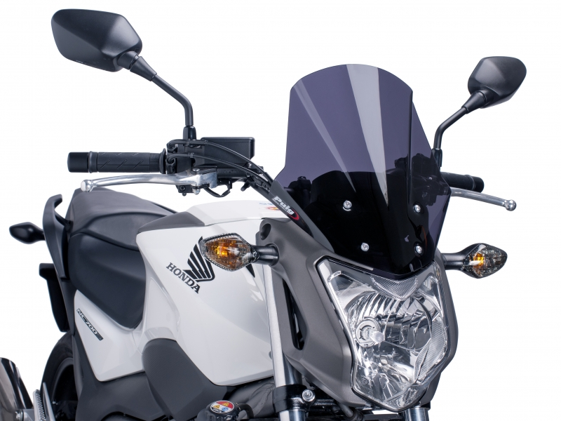 Carenabris Puig Racing 5991F Ahumado Oscuro. Cúpula derivada de la competición y específica para Honda Nc 700/ 750 s 2012/ 2015. Las cúpulas Puig Z-Racing estudiadas en el túnel del viento, mejoran el coeficiente aerodinámico y la protección contra el viento en un 12,7% de media. Su doble altura disminuye el efecto del aire sobre el casco. Realizada en acrílico de alto impacto de 3 mm, resistente y duradero. Perfil redondeado a 3 mm en los modelos desde el 2004, cumpliendo con la normativa del TÜV alemán. No se requiere ribete. Medidas: 340 x 295 mm.