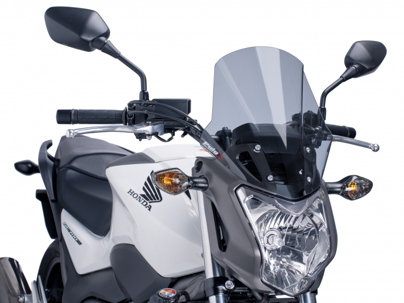 Carenabris Puig Racing 5991H Ahumado. Cúpula derivada de la competición y específica para Honda Nc 700/ 750 s 2012/ 2015. Las cúpulas Puig Z-Racing estudiadas en el túnel del viento, mejoran el coeficiente aerodinámico y la protección contra el viento en un 12,7% de media. Su doble altura disminuye el efecto del aire sobre el casco. Realizada en acrílico de alto impacto de 3 mm, resistente y duradero. Perfil redondeado a 3 mm en los modelos desde el 2004, cumpliendo con la normativa del TÜV alemán. No se requiere ribete. Medidas: 340 x 295 mm.