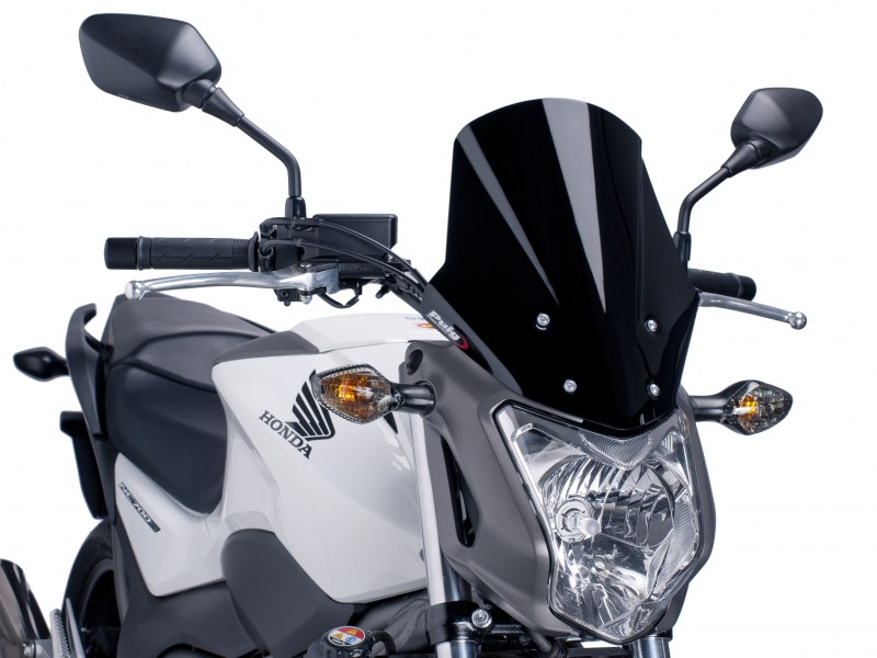 Carenabris Puig Racing 5991N Negro. Cúpula derivada de la competición y específica para Honda Nc 700/ 750 s 2012/ 2015. Las cúpulas Puig Z-Racing estudiadas en el túnel del viento, mejoran el coeficiente aerodinámico y la protección contra el viento en un 12,7% de media. Su doble altura disminuye el efecto del aire sobre el casco. Realizada en acrílico de alto impacto de 3 mm, resistente y duradero. Perfil redondeado a 3 mm en los modelos desde el 2004, cumpliendo con la normativa del TÜV alemán. No se requiere ribete. Medidas: 340 x 295 mm.