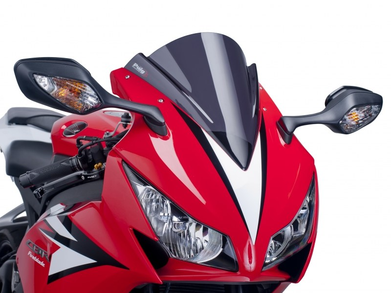 Carenabris Puig Racing 5994F Ahumado Oscuro. Cúpula derivada de la competición y específica para Honda Cbr 1000 rr 2012/ 2015. Las cúpulas Puig Z-Racing estudiadas en el túnel del viento, mejoran el coeficiente aerodinámico y la protección contra el viento en un 12,7% de media. Su doble altura disminuye el efecto del aire sobre el casco. Realizada en acrílico de alto impacto de 3 mm, resistente y duradero. Perfil redondeado a 3 mm en los modelos desde el 2004, cumpliendo con la normativa del TÜV alemán. No se requiere ribete. Medidas: 350 x 300 mm.