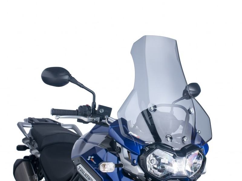 Carenabris Puig 6000H Ahumado. Cúpula Puig Touring para Triumph Tiger Explorer/ Xc 2012/ 2015. Para conducciones de larga distancia, Puig introduce la serie Touring para minimizar al máximo la fuerza del viento. Estas cúpulas levantan el paso del viento en varios centímetros, en relación a la cúpula original, permitiendo que el conductor mantenga una posición más cómoda y confortable conduciendo la motocicleta. Fabricada en acrílico de alto impacto de 3 mm, resistente y duradero. Perfil redondeado a 3 mm en los modelos desde el 2004, cumpliendo con la normativa del TÜV alemán. No se requiere ribete. Medidas (Altura x Anchura): 565 x 510 mm. 100 mm más alta que la original.