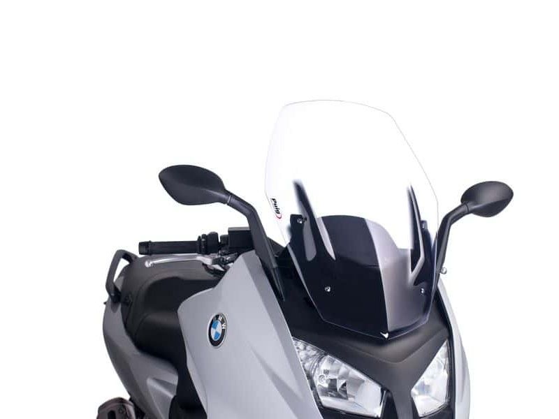 Carenabris moto cúpula Puig 6031W Bmw C600 Sport 2012/2015 V-Tech Line Sport Transparente. Cúpula Puig 6031 V-Tech Line Sport específica para la Bmw C600 Sport desarrollada en el tunel de viento para mejorar la estabilidad y penetración aerodinámica de origen. Tanto en la parte central como lateral presenta una forma angulosa que facilita la canalización del aire redirigiéndolo a ambos lados del piloto. La cúpula Puig 6031 mide 600 X 410 (ancho x alto) mm / 50 mm más baja que la original. Posee la homologación TÜV u ABE 38120.