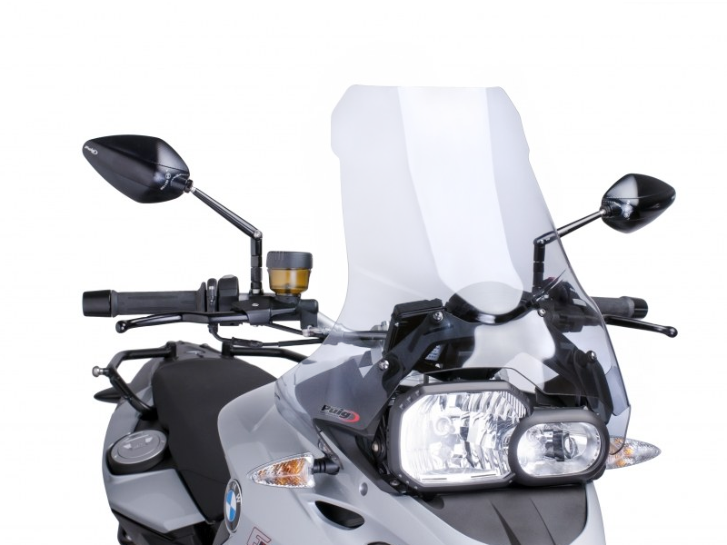 Carenabris Puig 6365W Transparente. Cúpula Puig Touring para Bmw F 700 GS 2012/15. Para conducciones de larga distancia, Puig introduce la serie Touring para minimizar al máximo la fuerza del viento. Estas cúpulas levantan el paso del viento en varios centímetros, en relación a la cúpula original, permitiendo que el conductor mantenga una posición más cómoda y confortable conduciendo la motocicleta. Fabricada en acrílico de alto impacto de 3 mm, resistente y duradero. Perfil redondeado a 3 mm en los modelos desde el 2004, cumpliendo con la normativa del TÜV alemán. No se requiere ribete. Medidas (Altura x Anchura): 500 x 410 mm. 200 mm más alta que la original.