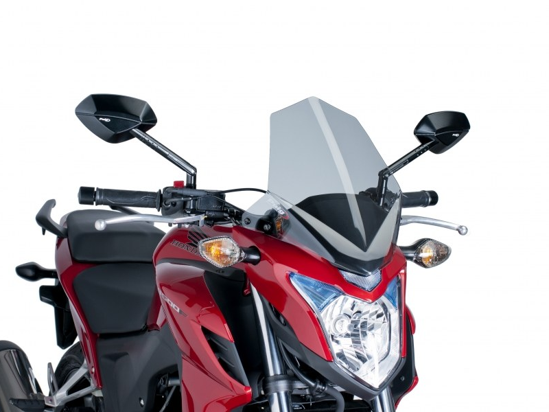Carenabris Puig 6437H Sport Ahumado. Cúpula Puig Naked New Generation específica para la Honda Cb 500 F 2013 / 2015. Fabricada con metracrilato de alto Impacto (3 mm) que ayuda a la aerodinámica y ofrece una mayor protección del piloto contra el viento. Con un diseño específico para cada moto, los carenabrises Naked New Generation se adaptan perfectamente a la motocicleta, consiguiendo un ajuste perfecto tanto en montaje como en acabados. Medidas (Altura x Anchura): 370 x 295 mm.