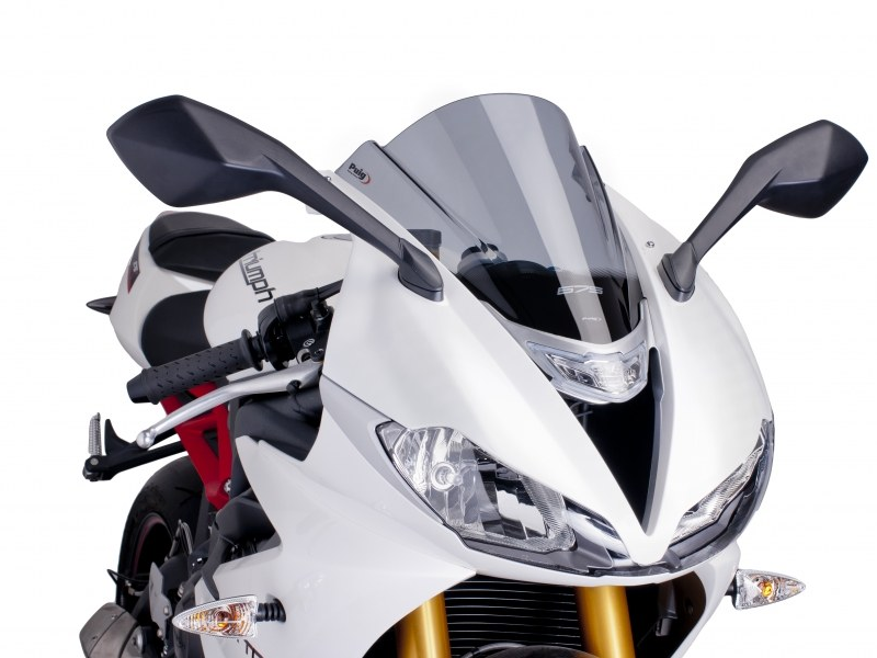 Carenabris Puig Racing 6498H Ahumado. Cúpula derivada de la competición y específica para Triumph Daytona 675/ R 2013/ 2015. Las cúpulas Puig Z-Racing estudiadas en el túnel del viento, mejoran el coeficiente aerodinámico y la protección contra el viento en un 12,7% de media. Su doble altura disminuye el efecto del aire sobre el casco. Realizada en acrílico de alto impacto de 3 mm, resistente y duradero. Perfil redondeado a 3 mm en los modelos desde el 2004, cumpliendo con la normativa del TÜV alemán. No se requiere ribete. Medidas (Altura x Anchura): 400 x 280 mm.