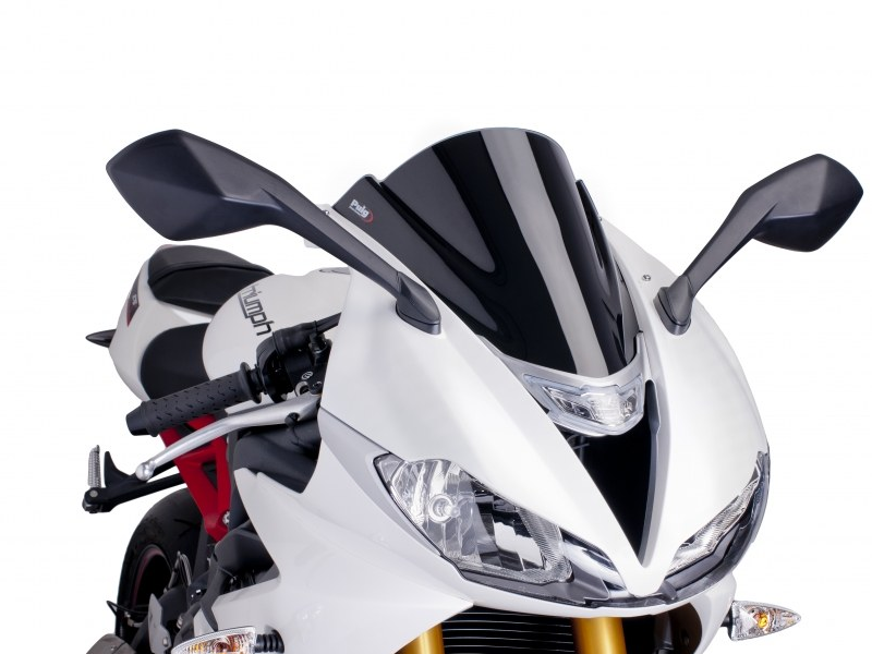 Carenabris Puig Racing 6498N Negro. Cúpula derivada de la competición y específica para Triumph Daytona 675/ R 2013/ 2015. Las cúpulas Puig Z-Racing estudiadas en el túnel del viento, mejoran el coeficiente aerodinámico y la protección contra el viento en un 12,7% de media. Su doble altura disminuye el efecto del aire sobre el casco. Realizada en acrílico de alto impacto de 3 mm, resistente y duradero. Perfil redondeado a 3 mm en los modelos desde el 2004, cumpliendo con la normativa del TÜV alemán. No se requiere ribete. Medidas (Altura x Anchura): 400 x 280 mm.