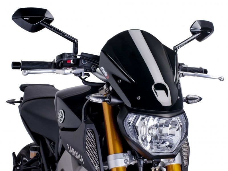Carenabris moto cúpula Puig 6861N Naked New Generation Yamaha MT-09 Negra. Cúpula Puig 6861N Naked New Generation específica para la Yamaha MT-09 (Naked) y que gracias a su metracrilato de alto impacto con grosor de 3 mm, ofrece una gran resistencia y excelente fijación a la moto. Esta cúpula ha sido perfectamente estudiada para mejorar la protección del motorista contra el viento. La cúpula Puig 6861N se caracteriza por sus acabados de gran calidad.