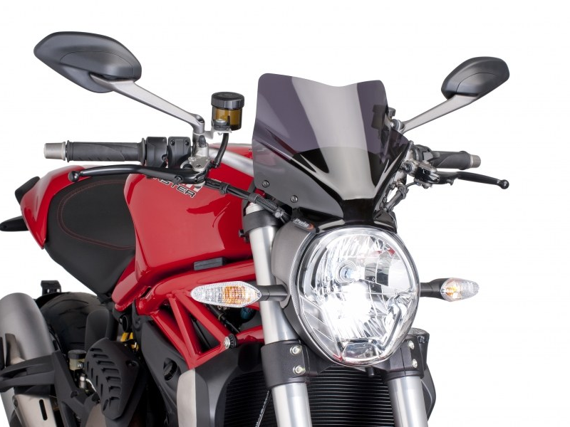 Carenabris Puig 7013F Sport Ahumado Oscuro. Cúpula Puig Naked New Generation específica para la Ducati Monster 821 / 1200 / S. Fabricada con metracrilato de alto Impacto (3 mm) que ayuda a la aerodinámica y ofrece una mayor protección del piloto contra el viento. Con un diseño específico para cada moto, los carenabrises Naked New Generation se adaptan perfectamente a la motocicleta, consiguiendo un ajuste perfecto tanto en montaje como en acabados. Medidas (Altura x Anchura): 300 x 290 mm.