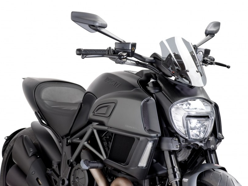 Carenabris Puig 7592H Sport Ahumado. Cúpula Puig Naked New Generation específica para la Ducati Diavel 2014 / 2015. Fabricada con metracrilato de alto Impacto (3 mm) que ayuda a la aerodinámica y ofrece una mayor protección del piloto contra el viento. Con un diseño específico para cada moto, los carenabrises Naked New Generation se adaptan perfectamente a la motocicleta, consiguiendo un ajuste perfecto tanto en montaje como en acabados. Medidas (Altura x Anchura): 300 x 250 mm.