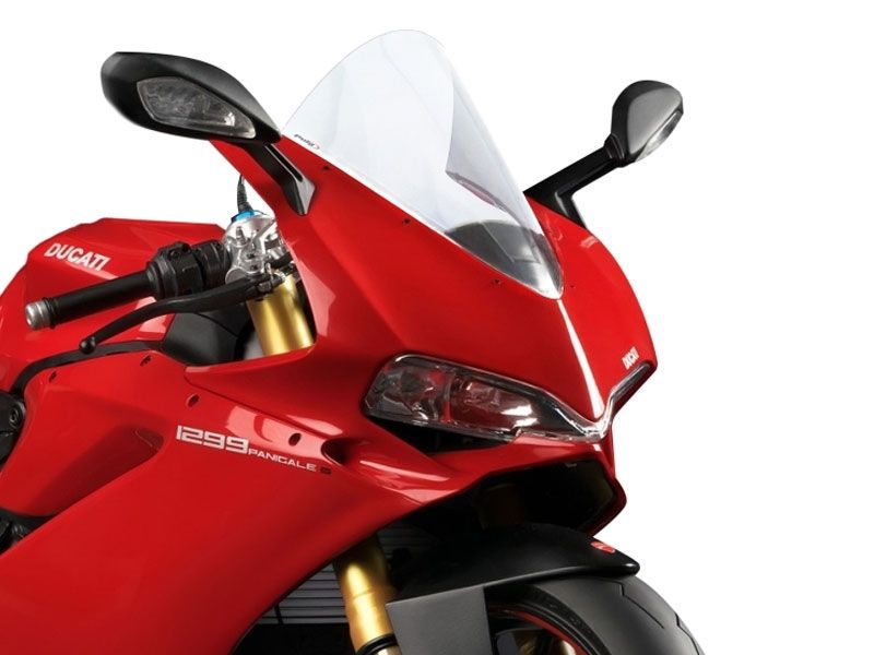 Carenabris Cúpula Puig Racing 7621W Transparente Ducati 1299 Panigale 1299 2015. La cúpula Puig 7621W Racing derivada directamente de la experiencia adquirida en competición. Su diseño es específico para la nueva Ducati 1299 Panigale y gracias a su doble altura, mejora notablemente la aerodinámica y la disminución del efecto del viento sobre el casco. De la resistencia se encarga un acrílico de alto impacto con 3 mm de grosor que garantiza la máxima durabilidad y acabados impecables. Se ha comprobado en el tunel del viento, que las cúpulas racing z-racing mejoran el coeficiente aerodinámico en un 12,7% de media. Medidas cúpula Puig 7621 (Altura x Anchura): 360 x 290 mm.