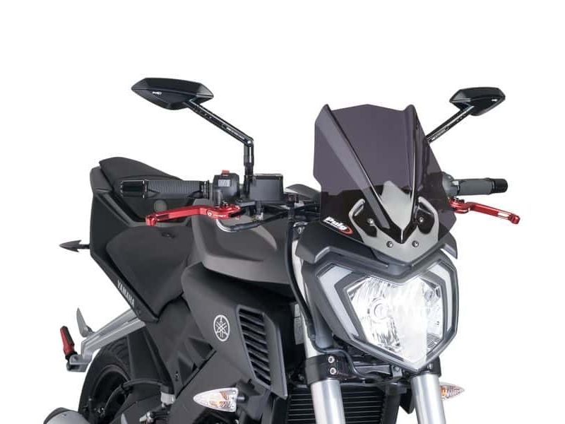Cúpula Puig 7654F Yamaha MT-125 2015 Naked New Generation Sport ahumada oscura. Cúpula Puig 7654F Naked New Generation específica para la Yamaha MT-125 y que gracias a su metracrilato de alto impacto con grosor de 3 mm, ofrece una gran resistencia y excelente fijación a la moto. Esta cúpula ha sido perfectamente estudiada para mejorar la protección del motorista contra el viento. La cúpula Puig 7654 se caracteriza por sus acabados de gran calidad. Posee la homologación TÜV u ABE 38188. Medidas: 320 X 260 mm (altura x Anchura). 160 mm más alta que la original.