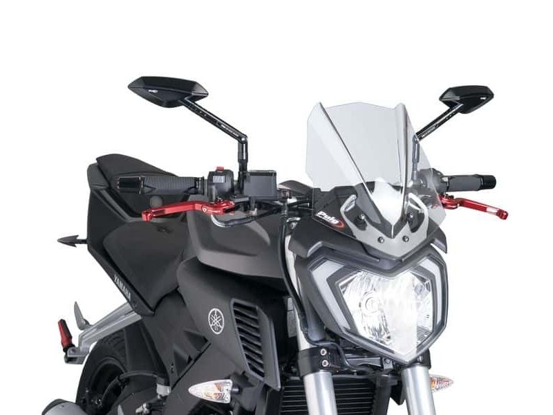 Cúpula Puig 7654W Yamaha MT-125 2015 Naked New Generation Sport transparente. Cúpula Puig 7654W Naked New Generation específica para la Yamaha MT-125 y que gracias a su metracrilato de alto impacto con grosor de 3 mm, ofrece una gran resistencia y excelente fijación a la moto. Esta cúpula ha sido perfectamente estudiada para mejorar la protección del motorista contra el viento. La cúpula Puig 7654 se caracteriza por sus acabados de gran calidad. Posee la homologación TÜV u ABE 38188. Medidas: 320 X 260 mm (altura x Anchura). 160 mm más alta que la original.
