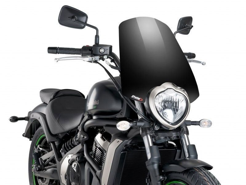 Carenabris moto cúpula Puig 8164N Naked New Generation Kawasaki Vulcan S 2015/2016 Negro. Cúpula Puig 8164N Naked New Generation específica para la Kawasaki Vulcan S y que gracias a su metracrilato de alto impacto con grosor de 3 mm, ofrece una gran resistencia y excelente fijación a la moto. Esta cúpula ha sido perfectamente estudiada para mejorar la protección del motorista contra el viento. La cúpula Puig 8164N se caracteriza por sus acabados de gran calidad.
